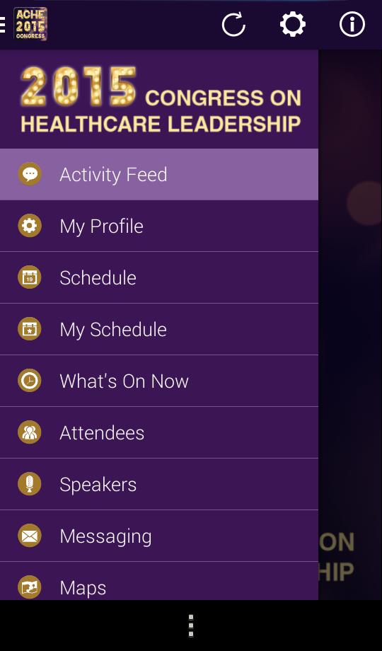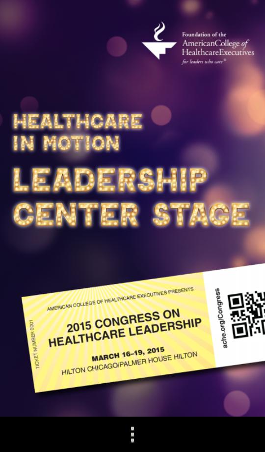 Attendees of the American College of Healthcare Executives (ACHE) 2015 Congress on Healthcare Leadership, taking place March 16–19, 2015, in Chicago, can enhance the on-site experience with this mobile app. Login will be required for select features after download. Your username is your Congress registration/badge number and your password is your last name.