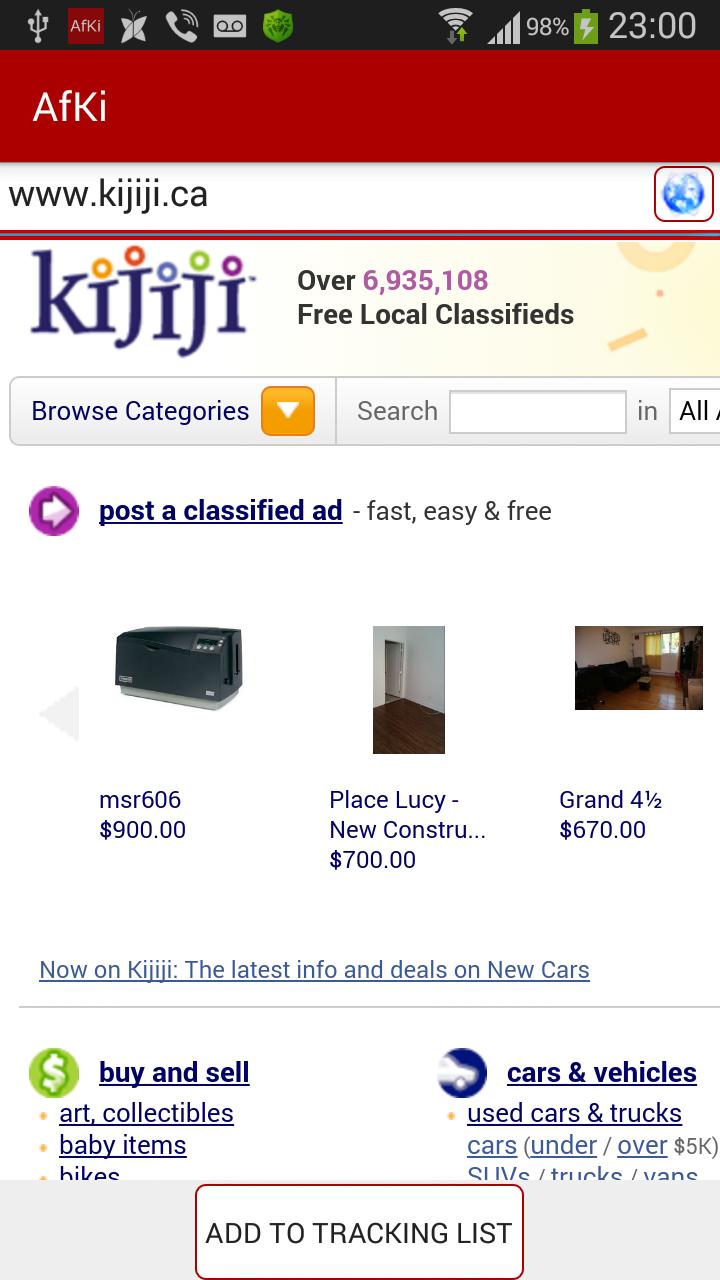 AfKi allows to be one of the first who get alerts about new ads on Kijiji etc...