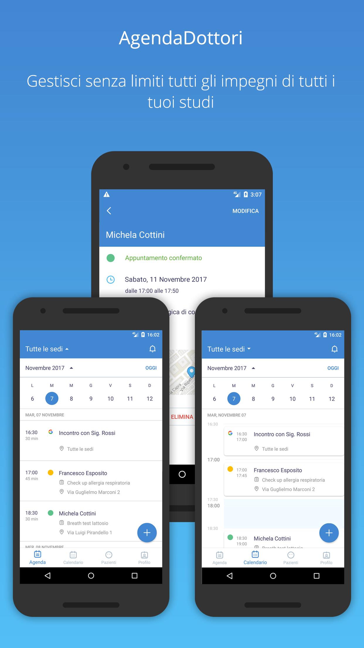 AgendaDottori allows specialists to receive, manage and/or simply modify all professional commitments, even on several medical studies.
