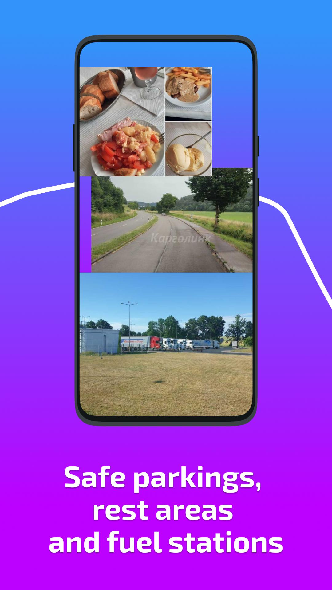 Truckers themselves provide information about free parking spaces, inexpensive cafés for lunch through reviews.