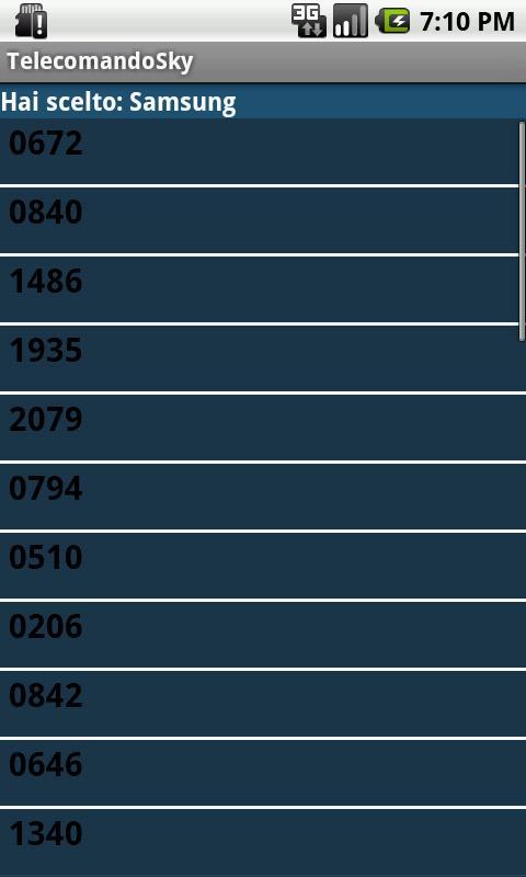 List of codes to program the Sky remote control to also control the TV. Possibility to store the code found by adding a label so that you can recover it in the future quickly. This application is useful both for Sky subscribers to store the code with a label so that in the future, after the batteries have run out, it can be recovered quickly the exact code, and also to Sky installers to store for example the code of various customers.