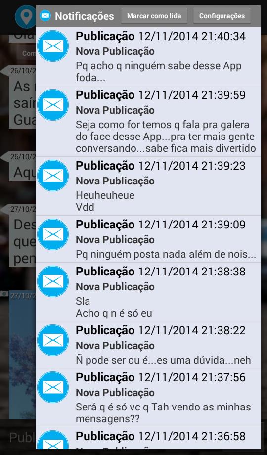 The FreeSpace-Messenger is a simple and useful for anyone who likes to share information in real time on the internet application. Its differential is the fact that it allows its users to send messages and photos anonymously in public mural called map, but the map! You set your publications through its current location on the map, When publishing something with this app users who are in close reach of 10Km receive your publication.