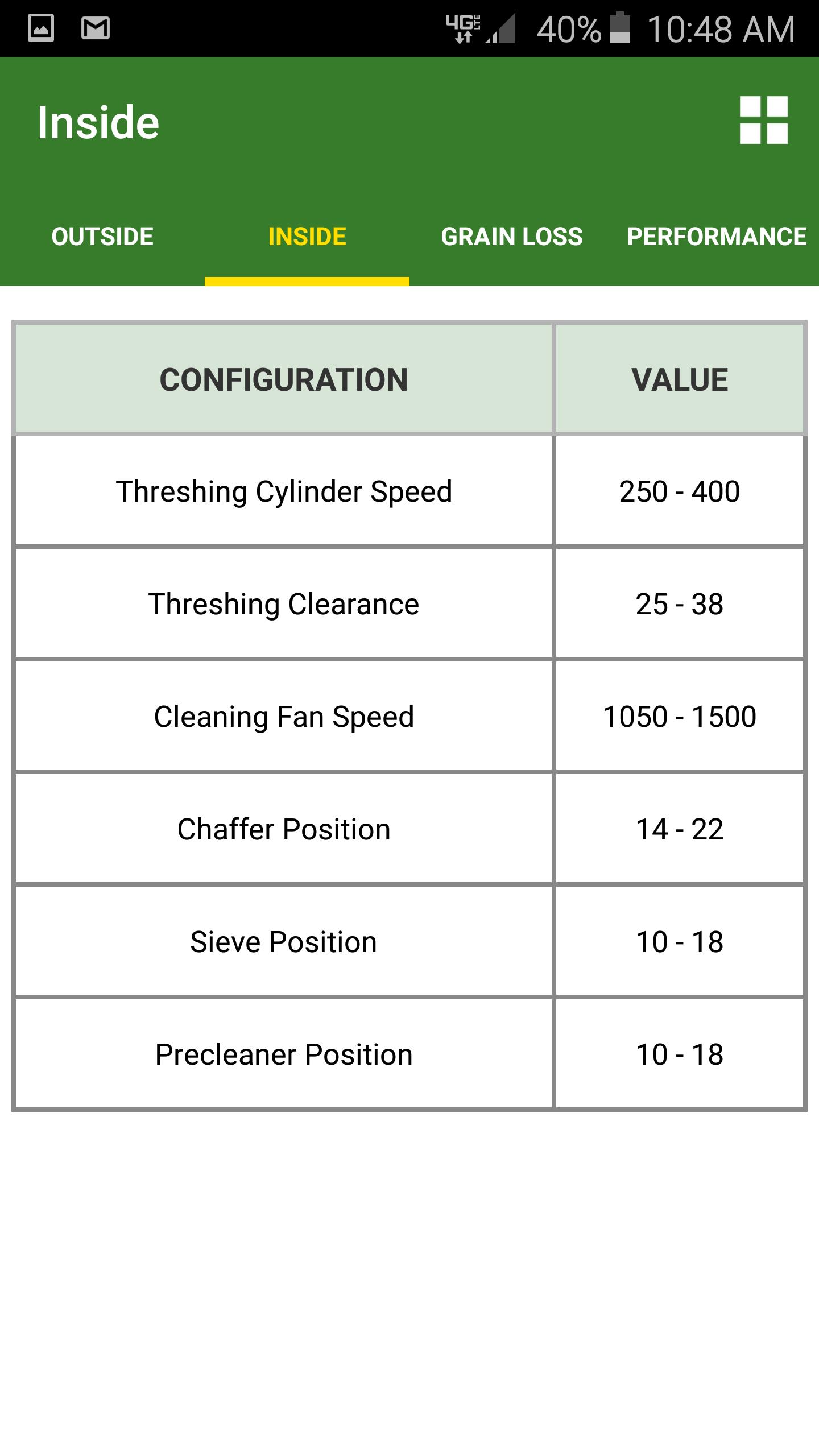 The GoHarvest application gives S, W and T series combine operators the ability to optimize their 2012 or newer machine as they enter the harvest season. Operators choose the model of combine and type of crop. GoHarvest suggests initial settings for that crop type. GoHarvest also features a notes section and photo functionality to give combine operators a premium experience when setting their machine. GoHarvest is also a great guide to use in field for settings changes as conditions differ, and to document changes made to settings during harvest.