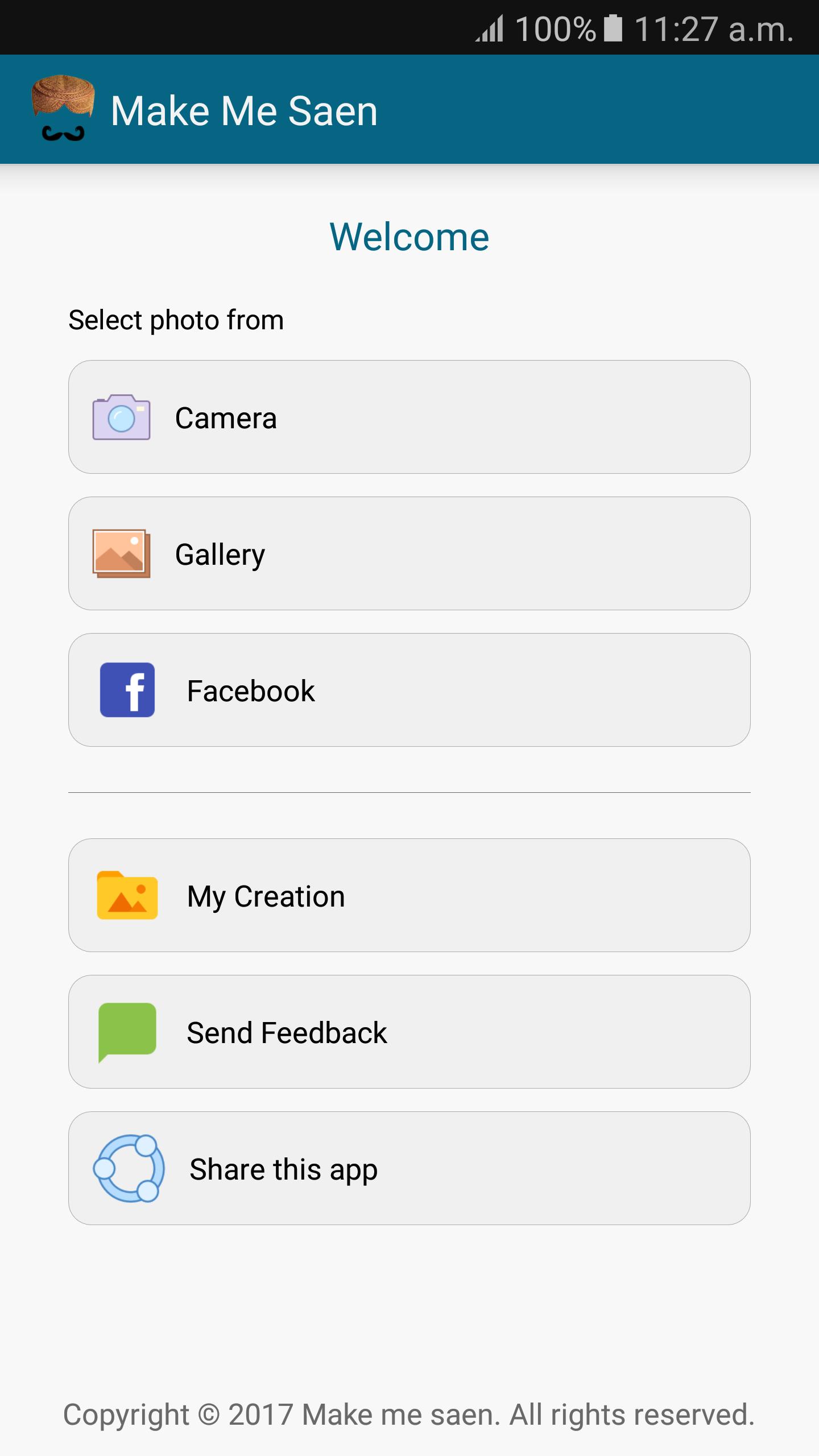 In this app you can take pictures from gallery OR camera OR Facebook and make it Saen.