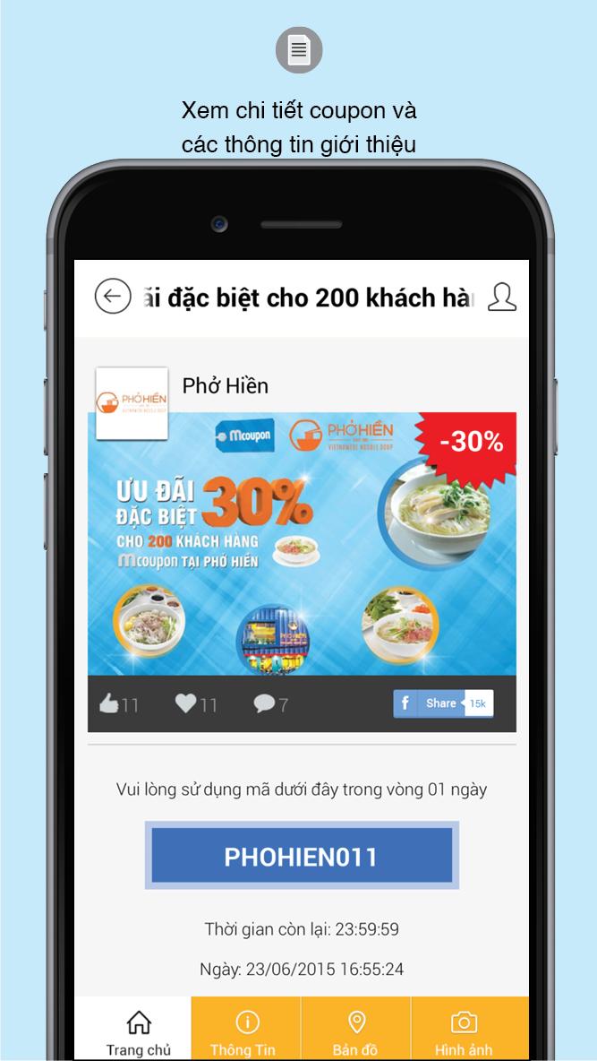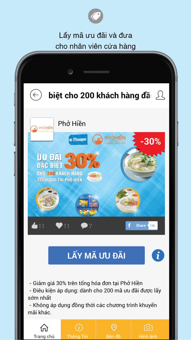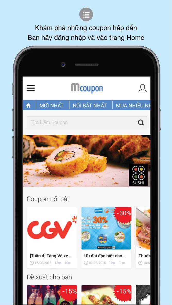 Mcoupon is the application which supply the promotions from popular brands in Vietnam at F&B, shopping, entertainment, beauty, education and other category. User can enjoy promotions by e-coupon and participate in our interactive activities in app