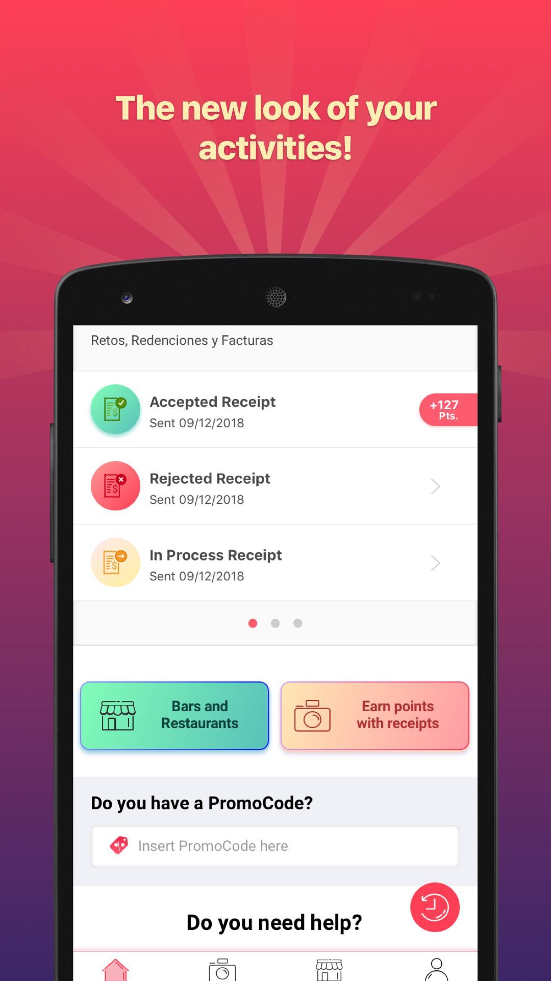 Earning points is easy! Just scan your legal receipt from any bar or restaurant. Yes, any bar or restaurant in your city and we'll do the rest.