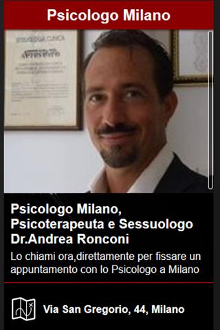 (English): Through Psicologo Milano you can get Directly in touch with Dr. Andrea Ronconi Psychologist Psychotherapist Sexologist Freelancer.