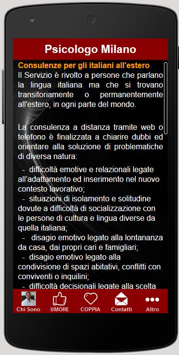 Psicologo Milano is also designed for migrant people, who are abroad even just transiently (work, travel, holidays) who for various personal and relational reasons had the need to receive help and emotional support at a distance, in Italian.