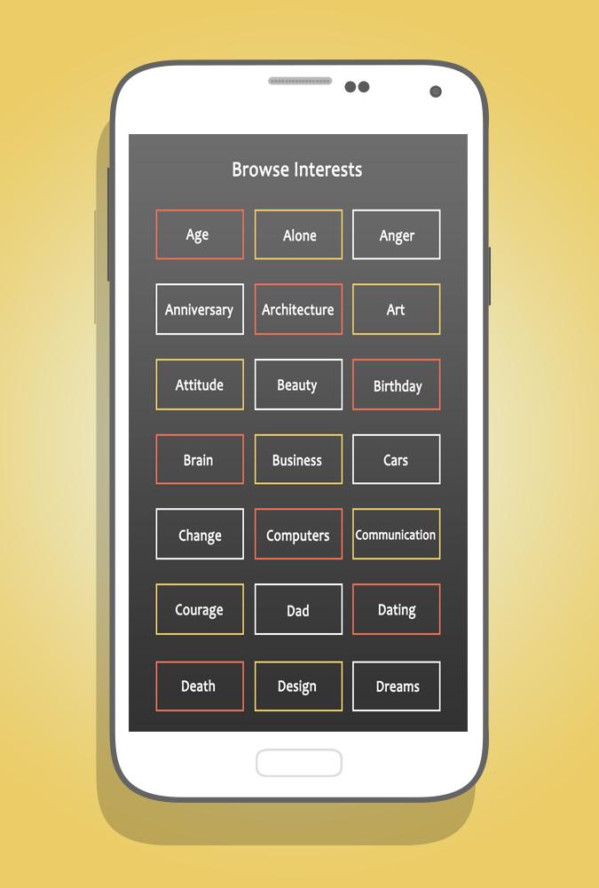 Quotations and Sayings is a collection of quotes categorized as topics that touch a human life (topics such as below)