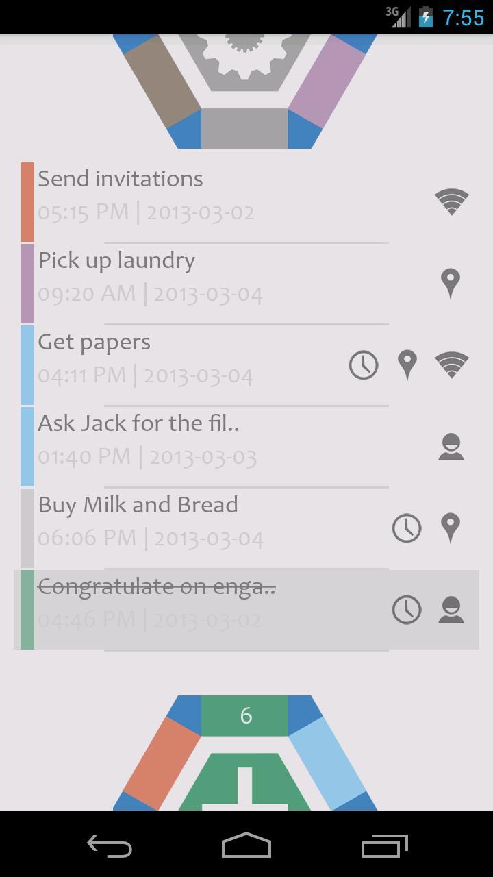 Rethink gives you the ability to set various triggers that get activated just in the right moment and only in the right context so you can be more productive! You can be reminded of a task when you arrive at a particular location, contact or get contacted by someone (phone calls and text messages included), connect to a specific Wi-Fi network or when the right time comes. This way you can take your mind off the details and focus on what is really important to you.