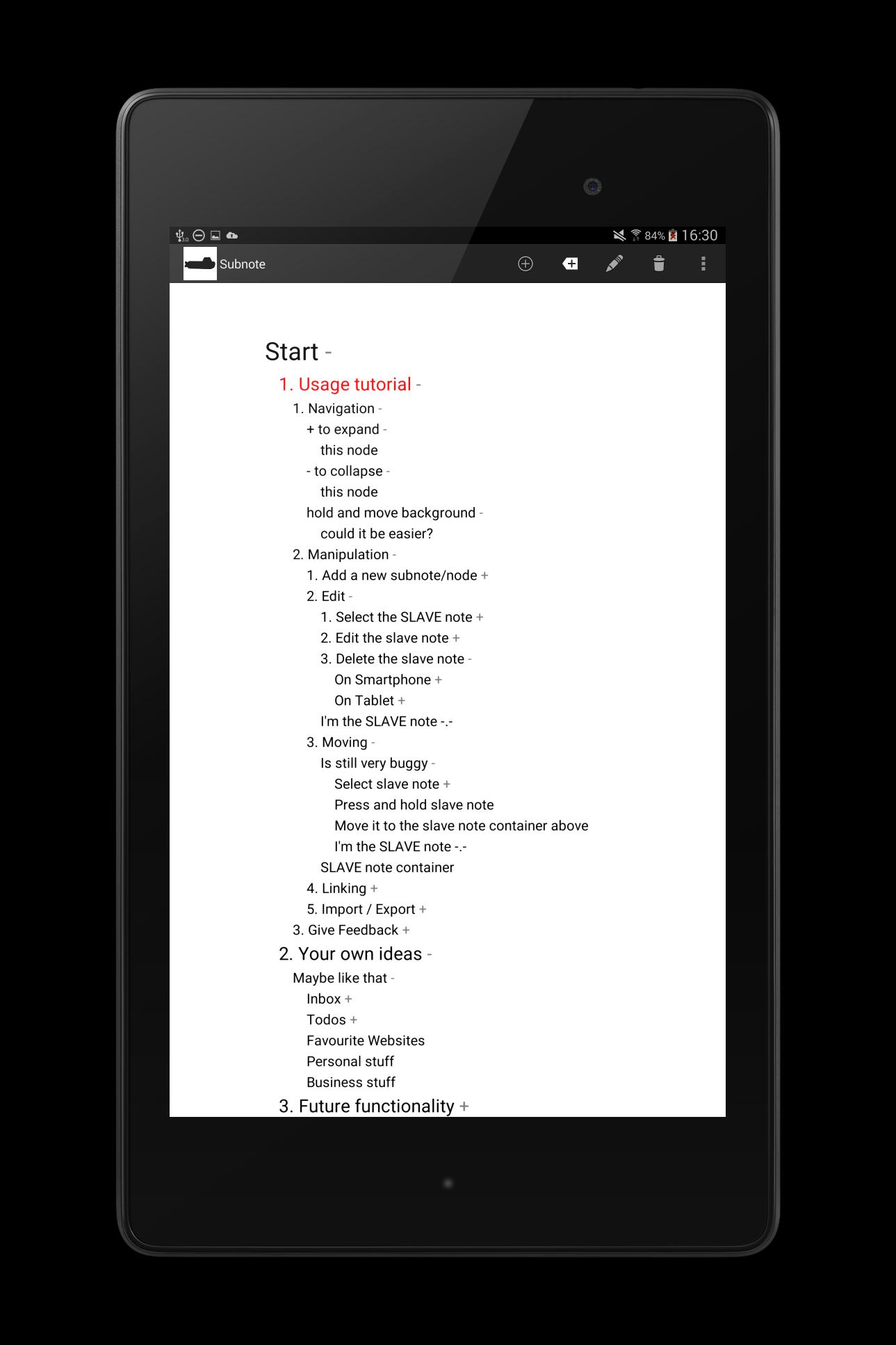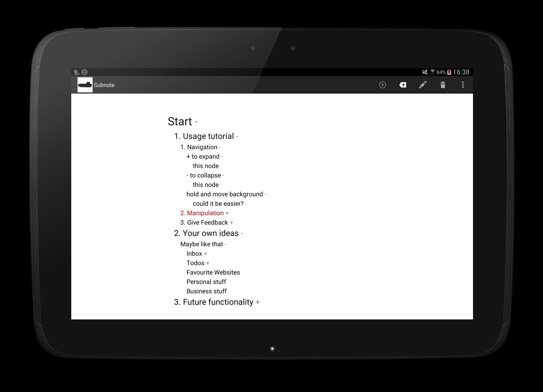 Minimalistic app to capture, organize and review thoughts on the go. Compatible with XMind (http://xmind.net), a mind mapping software for desktop used by millions of people.