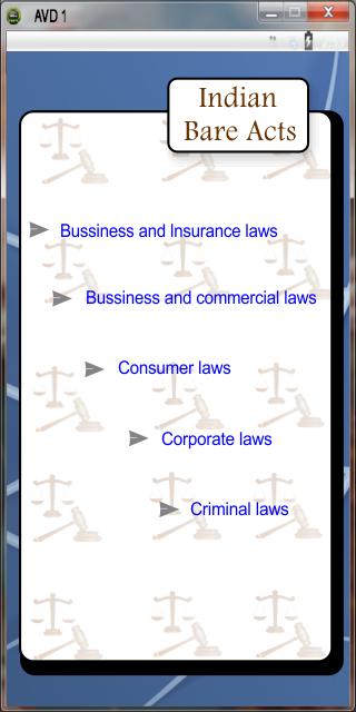 The Indian Bare Acts application contains more than 300 Indian Law Bare Acts. this Application is very useful for Law Students, Advocates and people in general who are eager to understand and know about the Indian Laws. This application contains almost all the Bare Acts including IPC, CPC, CrPC, Evidence, Constitution, Company Law etc. The best part of it is, its FREE...!!!