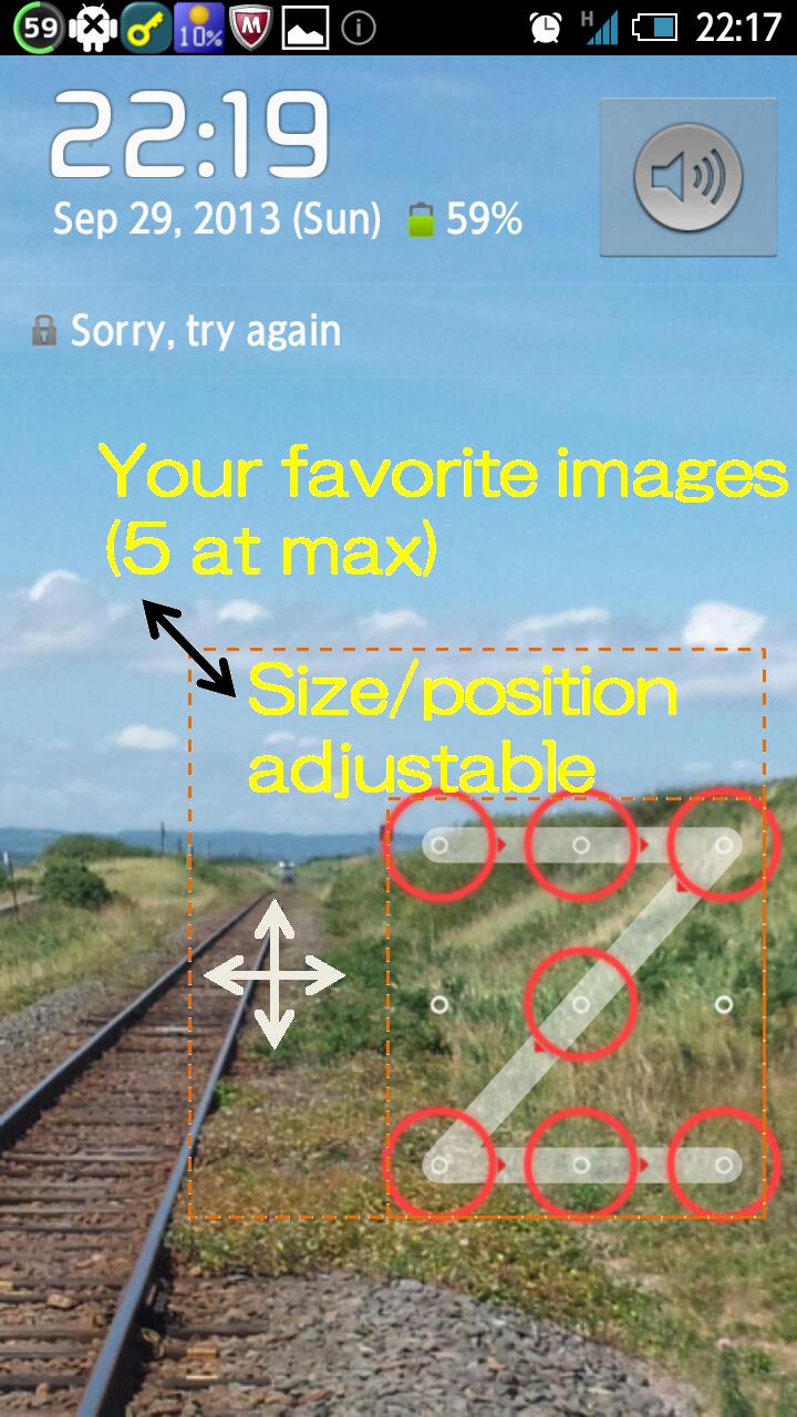 ► Pattern/PIN tile : Flexibility of size and position so that your thumb can easily unlock.