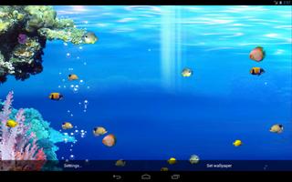 خلفية حية مباشرة المحيط مع مشهد تحت سطح البحر. العديد من الأسماك تسبح على الشعاب المرجانية. يمكن أن يصل 35 سمكة.