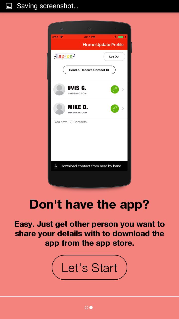 يعد تطبيق TAP-ON DISTER طريقة سهلة وآمنة مما يمكّنك من تبادل معلومات الاتصال مثل رقم الهاتف أو عنوان بريد إلكتروني مع شخص قد ترغب في تاريخه ، ويتم ذلك بشكل سليم ودون إحراج.