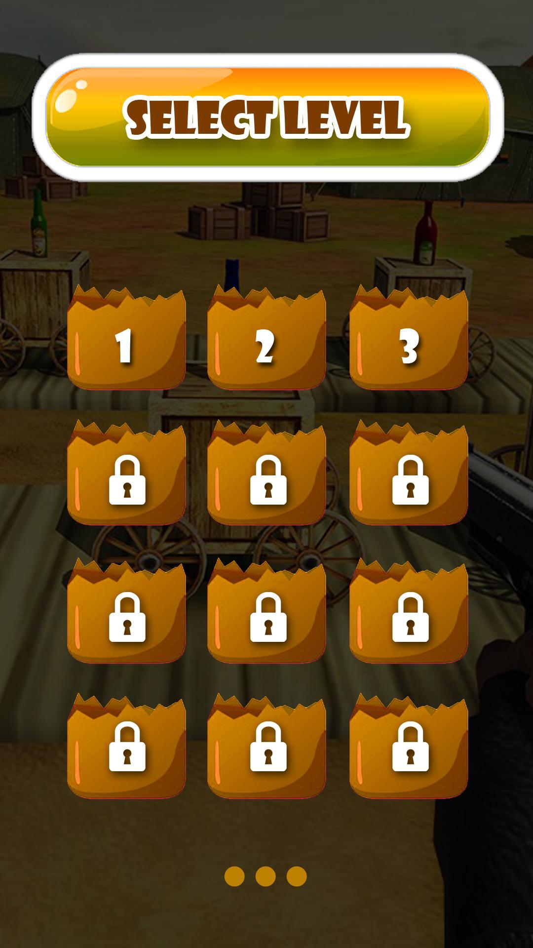 - الهدف واطلاق النار على الزجاجات ومسح المستوى.