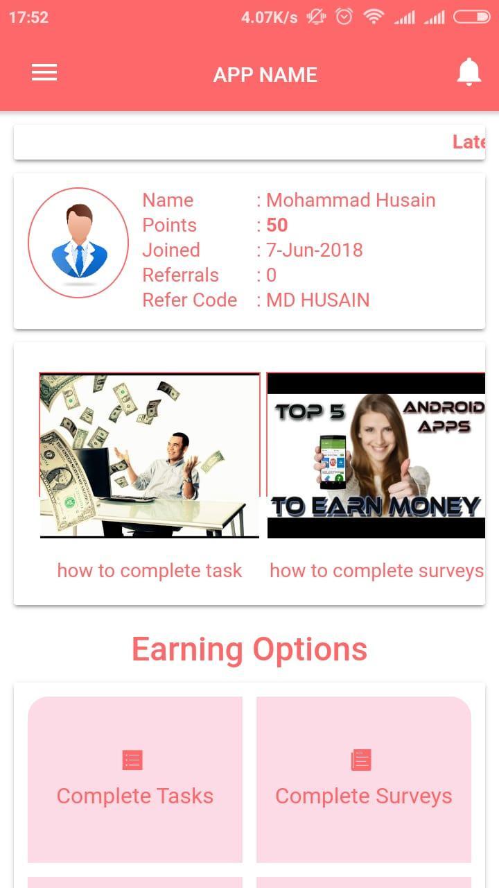 تم تصميم تطبيق الإيرادات عبر الإنترنت للعمل المنزلي الذي يمكنك من خلاله القيام بأرباح جيدة عبر الإنترنت عن طريق القيام بعمل بدوام جزئي. يمكنك القيام بكسب جيد في وقت ما مع تطبيق Mobile Android عبر الإنترنت.