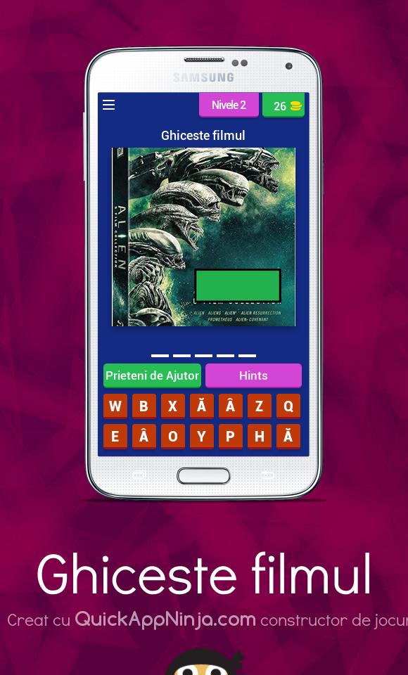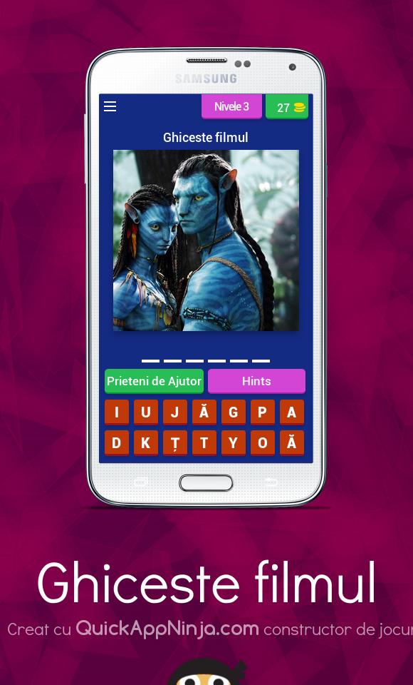 Ghiceste filmul عبارة عن لعبة مصممة لعشاق الأفلام ، ويحتوي كل مستوى على صورة من فيلم سأخمنه ، ستتبع المزيد من السقوط مع المزيد من الأفلام. الكثير من بافتا