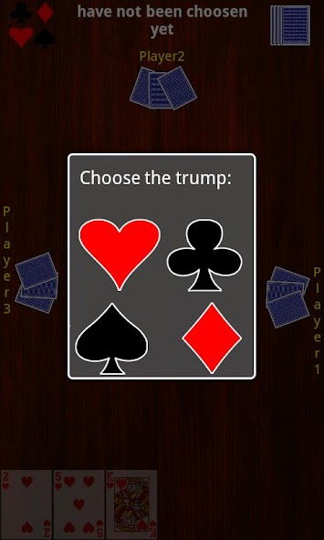 توجد بدلة مصممة كترامب في بداية اللعبة. هناك بدلات ذات معنى خاص: نوادي ترامب تضاعف عدد الحيل التي فاز بها. يتطلب ترامب القلوب جميع اللاعبين للذهاب في اللعبة.
