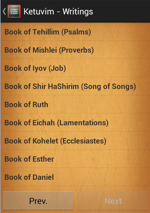 Tora ("Lehre", auch bekannt als fünf Bücher von Moses), Nevi'im ("Propheten") und Ketuvim ("Schriften") - daher Tanakh.