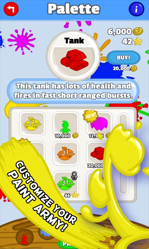 Testen Sie Ihre Fähigkeiten im Überlebensmodus und schalten Sie tolle neue Truppen frei! Steigen Sie an die Spitze und schalten Sie neue Farbkreationen wie das Schlachtschiff oder den Panzer frei! Schieße deine Gegner mit den ultimativen Einheiten der Farbkriegsführung in die Luft!