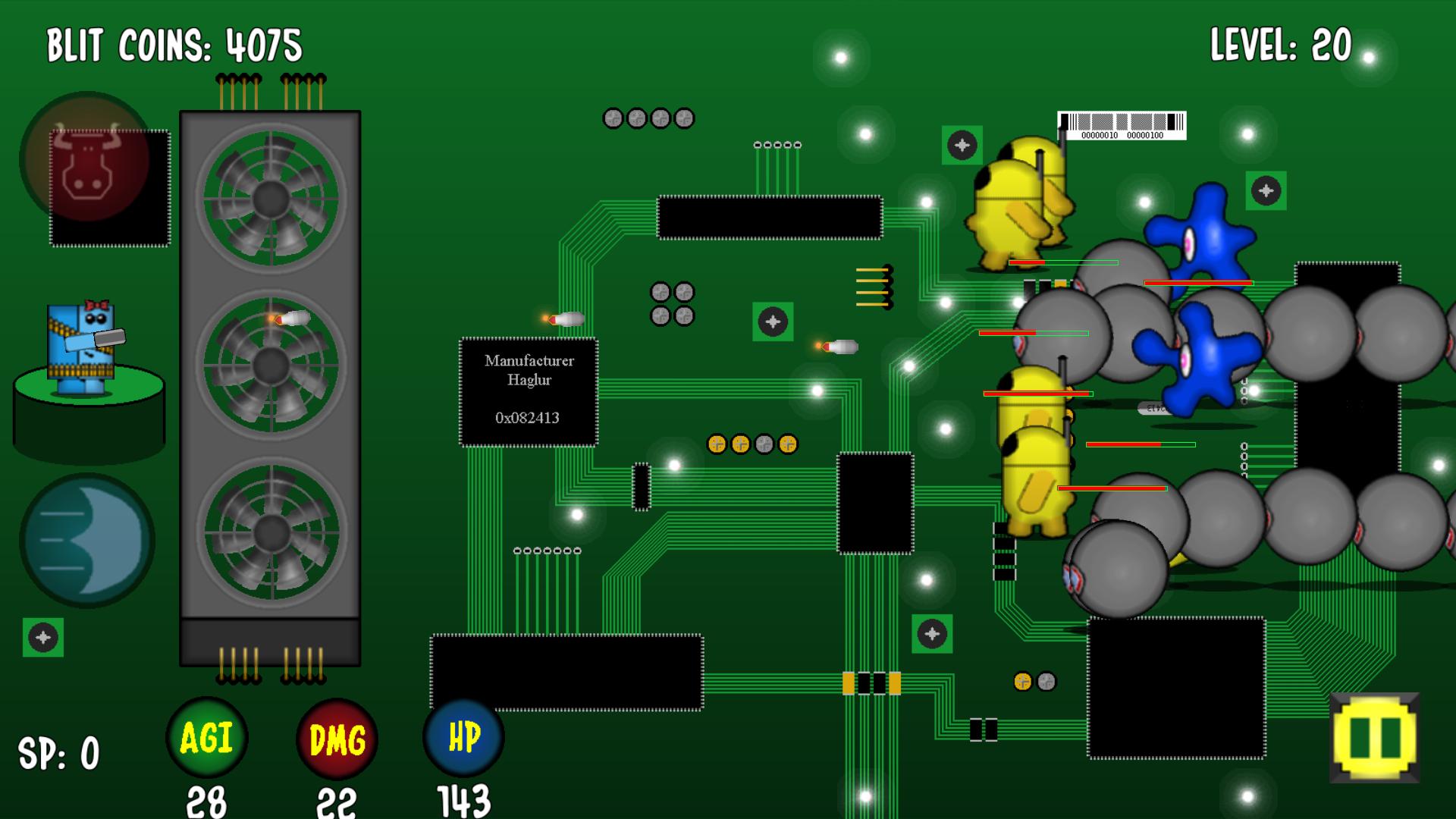 Blit the Obliterator ist ein unendliches Turm -Verteidigungsspiel, bei dem Sie ein Pixel namens Blit spielen. Ihr Ziel ist es, Wellen von Feinden auszulöschen, die versuchen, die Stromversorgung von Blit zu kurz zu machen. Wenn die Netzteilshorts, wird Blit sterben! Sehen Sie, wie lange Sie überleben können!