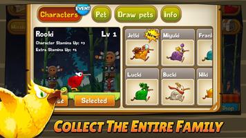 • Sammeln Sie alle 6 Mitglieder der Familie Kiwi! Rooki, Pinki, Wiki, Franki, Miyuki und Bucki!