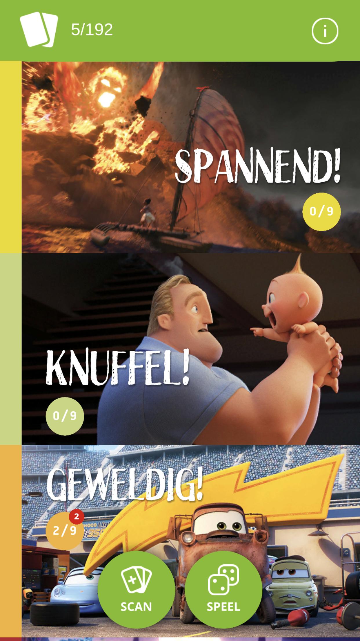 Mit der App können Sie die Filme mit Augmented Reality zum Leben erwecken. Mit Hilfe der speziellen Scan -Karten nehmen Sie ein Bad in das Meer von Dory, lösen Sie ein ELSA -Puzzle und hören Lightning Racing McQueen Racing. Entdecken Sie jeden Sound, jeden Spiel und jeden Moment!
