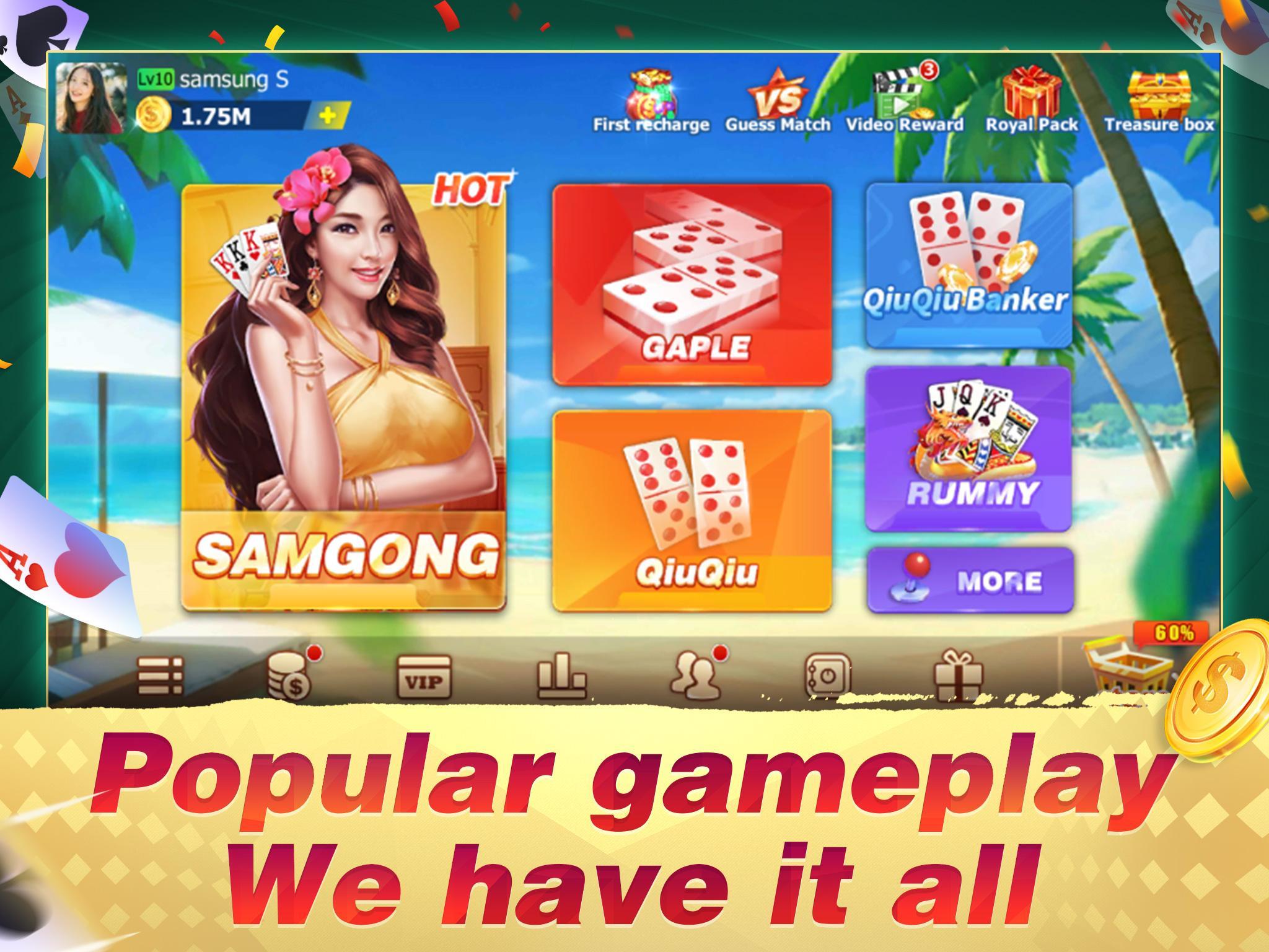 ♠ Verschiedenes Gameplay. Neben Samgong (Sakong) bieten diese Apps auch 10 verschiedene beliebte Kartenspiele. Spielen Sie, was Sie möchten.