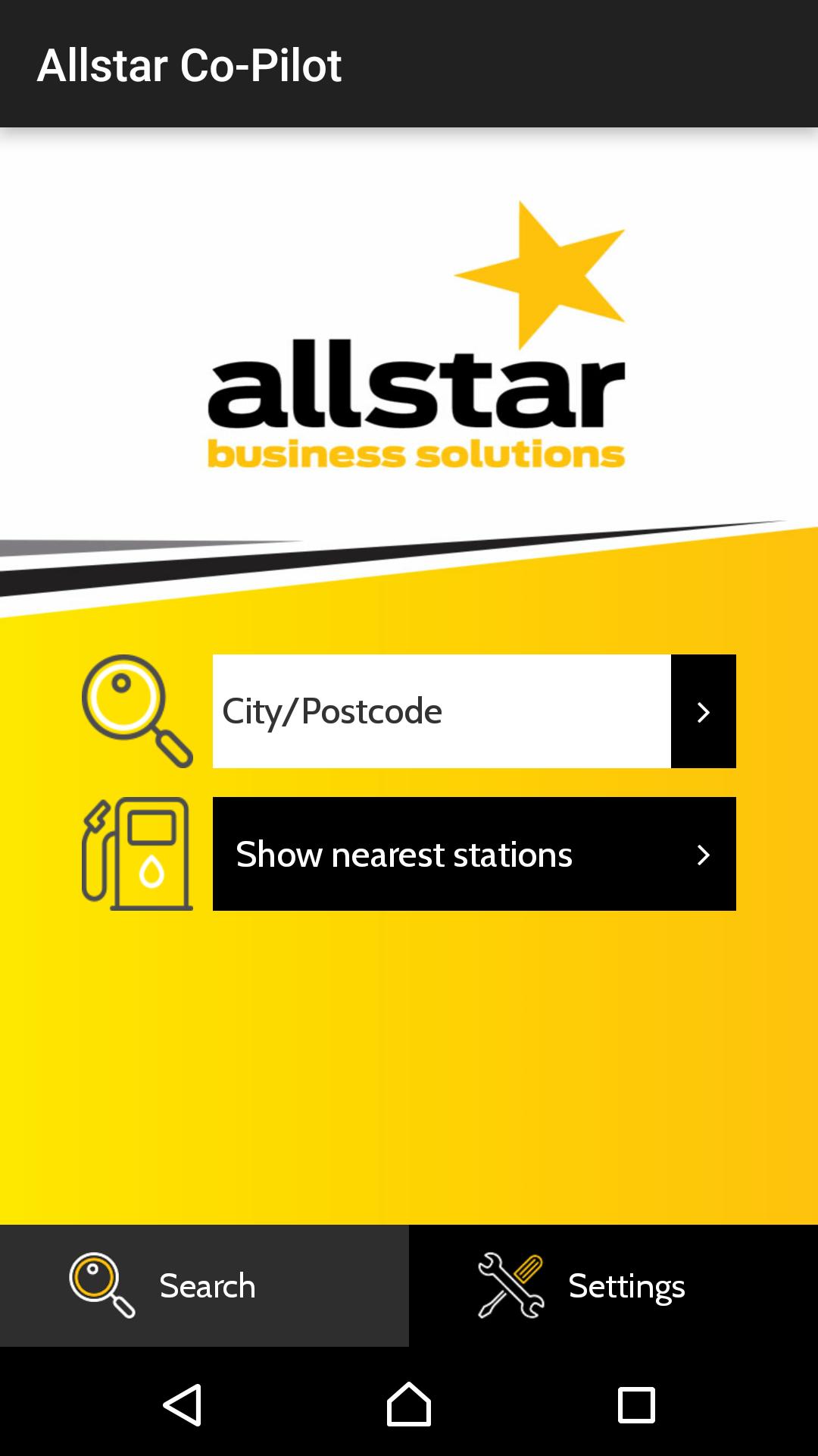 Allstar Co-Pilot es una aplicación de localización de la estación de combustible GPS que permite a los usuarios encontrar estaciones de combustible que acepten la tarjeta de combustible Allstar y la tarjeta de combustible del programa Allstar Premier.