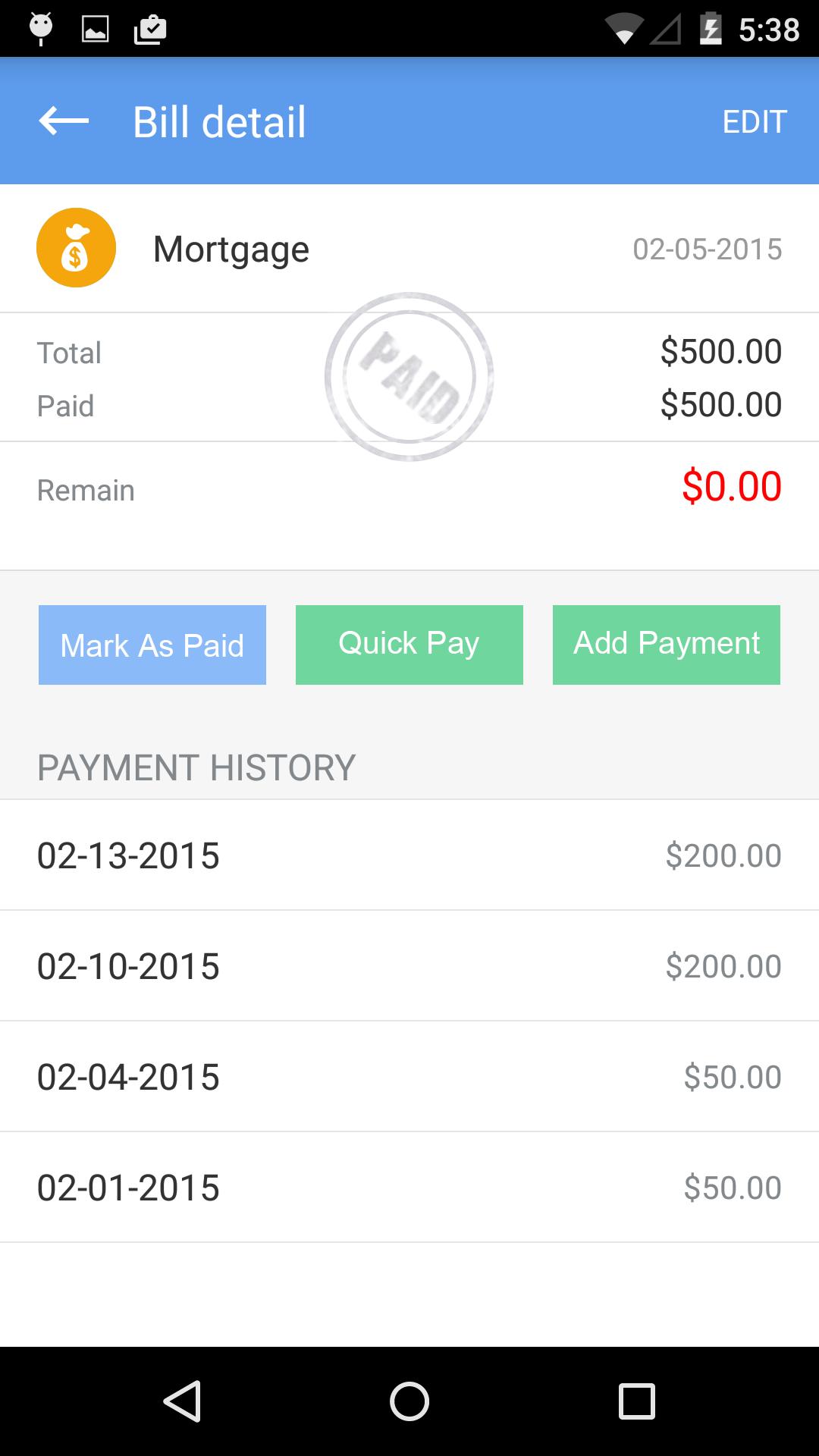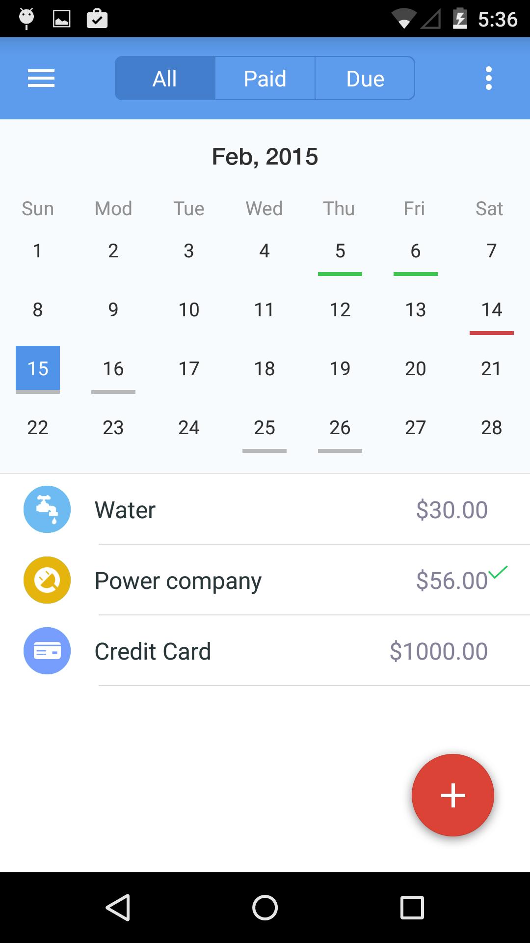 Bill Keeper tiene una interfaz de usuario amigable. Sabrá de un vistazo qué facturas necesitan su atención y también puede rastrear sus gastos con hermosos cuadros y gráficos.