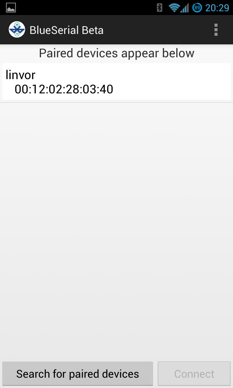 Blue Serial es una aplicación de código abierto para conectar un dispositivo Android a un dispositivo en serie Bluetooth habilitado como Arduino y otros dispositivos. Se ha probado ampliamente para trabajar con el módulo JY-MCU y debería funcionar para una amplia gama de dispositivos.