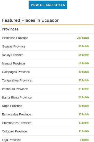 Una búsqueda y nuestra aplicación buscarán todos los hoteles listados y le darán los mejores precios en una pantalla para todas las ofertas. El listado de albergue y motel también está en nuestra aplicación. ¡Reserve su habitación ahora! ¡Disfruta de Ecuador!