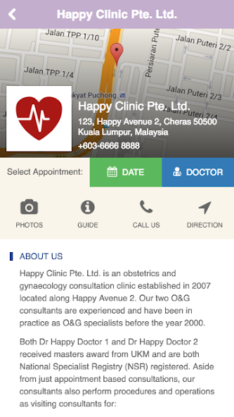 Puede agregar sus clínicas u hospitales favoritos a su aplicación, y acceder al horario del médico y hacer una cita directamente con el médico en cualquier momento y en cualquier lugar.