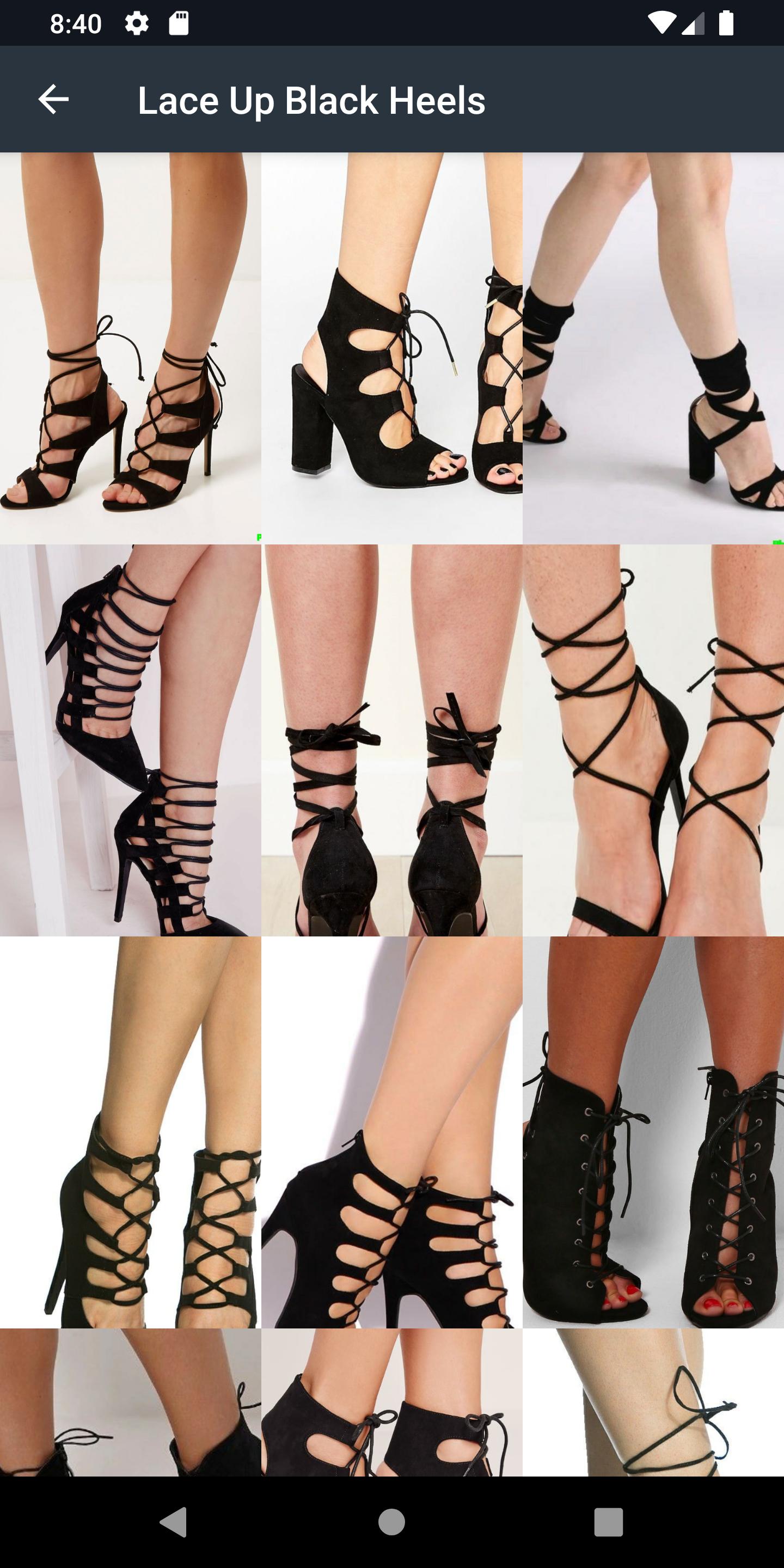 Descargue ideas de diseño Lace Up Black Heels completos en esta aplicación de forma gratuita.