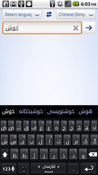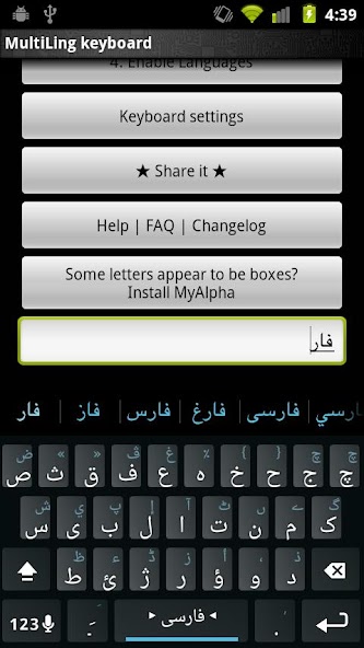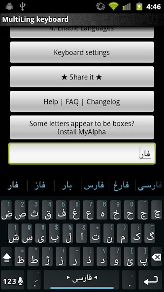 Complemento de diccionario persa (farsi) para el teclado multilinge o