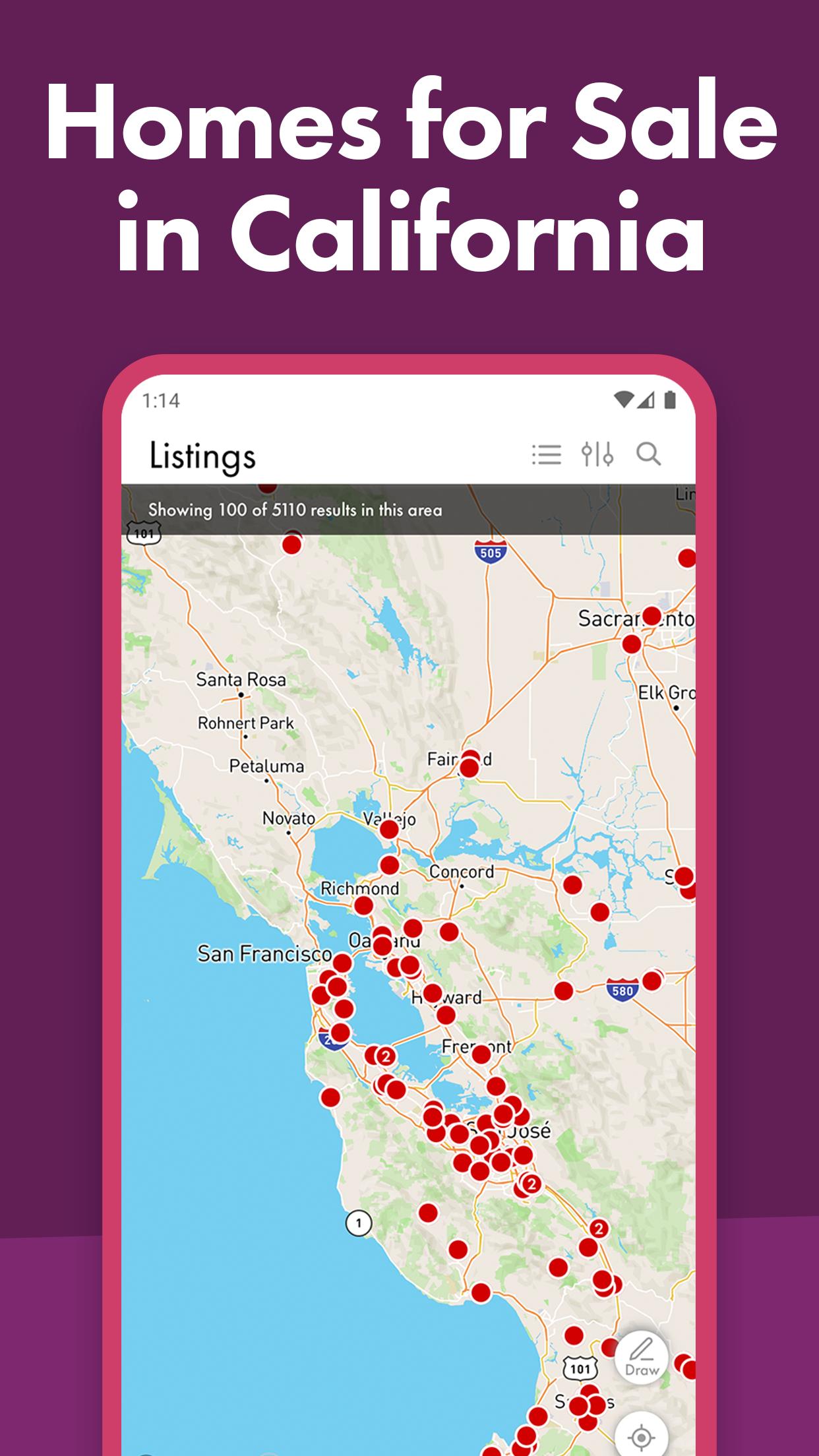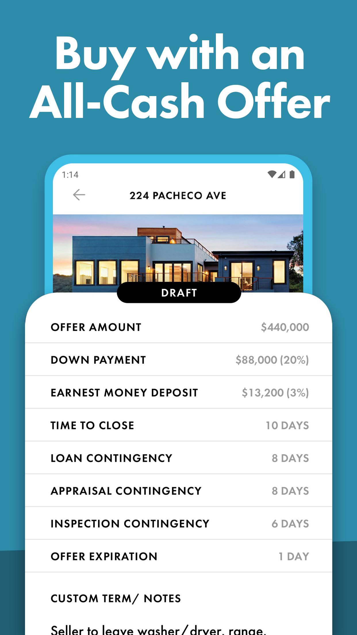 Compre y venda casas en California desde la comodidad de su hogar. Explore las casas para la venta, realice recorridos en 3D, chatee con los agentes y haga o administre las ofertas directamente en su teléfono.