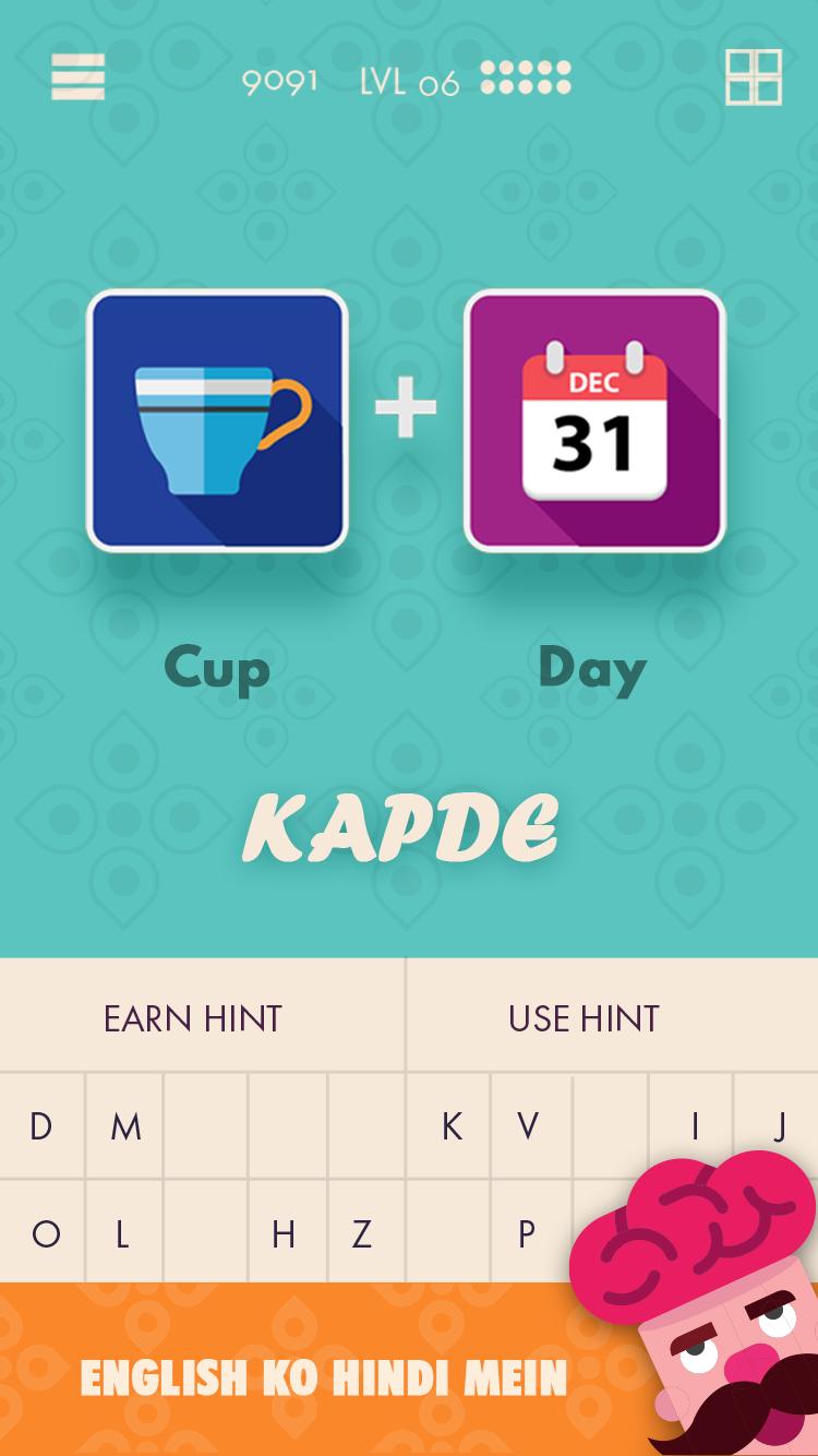 Hay muchos acertijos desafiantes y las imágenes deben interpretarse tanto en inglés como en hindi. Encuentre el significado correcto de las imágenes y combínelas para obtener la respuesta correcta. Los rompecabezas son asombrosos, deliciosos y te dejarán riendo durante horas.