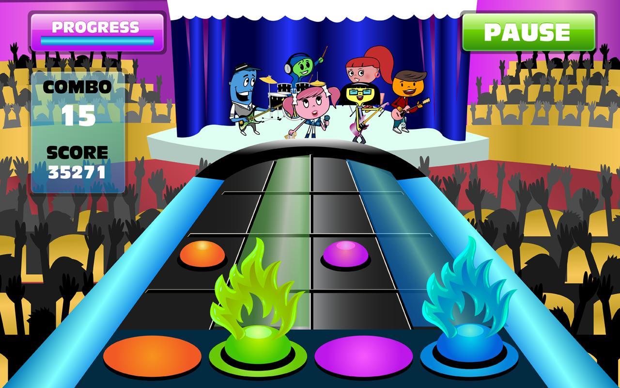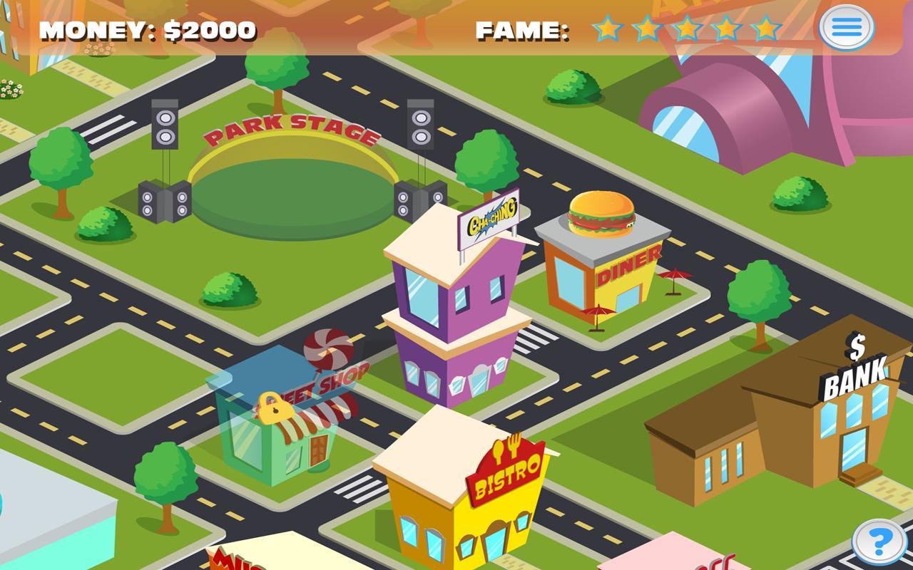 Usted es el Cha-Ching BAND MANAGER y necesitan su ayuda para llevarlos a nuevas alturas de estrellato. ¡Prepárese para un viaje musical desde el pequeño escenario hasta las luces brillantes de la arena y ayude a la banda Cha-Ching a convertirse en mega estrellas globales! Cree sus propias canciones en el estudio y préntese para sus admiradores en diferentes lugares de la ciudad, además de todas las canciones de la banda que ya las han hecho famosos. Realice las canciones de otras bandas y vea cómo se comparan. A medida que la banda sea mejor, podrán desbloquear lugares más grandes y mejores. Deberá administrar las ganancias de la banda en el banco y ayudar a mejorar sus actuaciones comprando mejores instrumentos de la tienda de música y las potencias en las instalaciones de capacitación y Sweet Shop. Comparta su música con otras bandas y aumente su popularidad. ¿Tienes lo que se necesita para ayudar a la banda a ganar, ahorrar, gastar y realizar su camino hacia la supremacía mundial de rock?