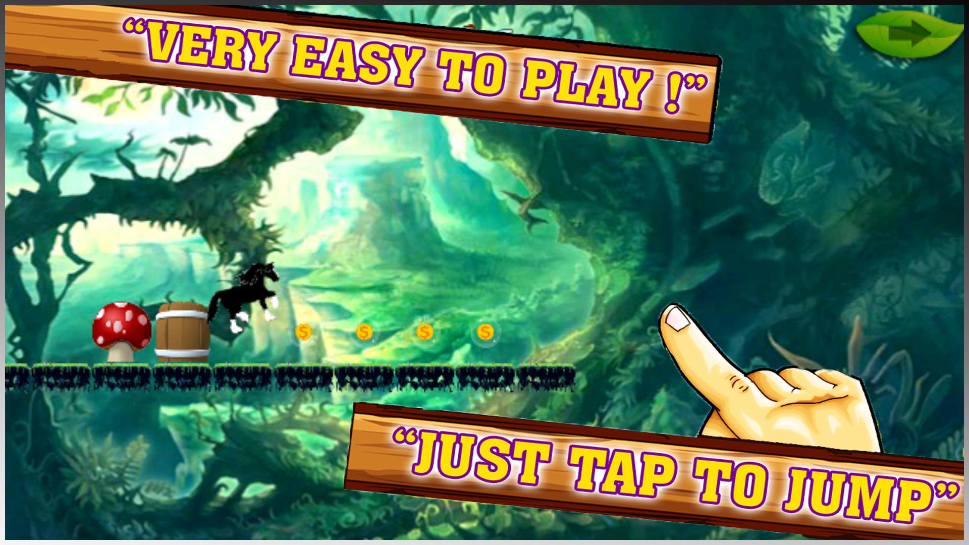 Toque la pantalla para ayudar al caballo oscuro a saltar a través de los obstáculos.