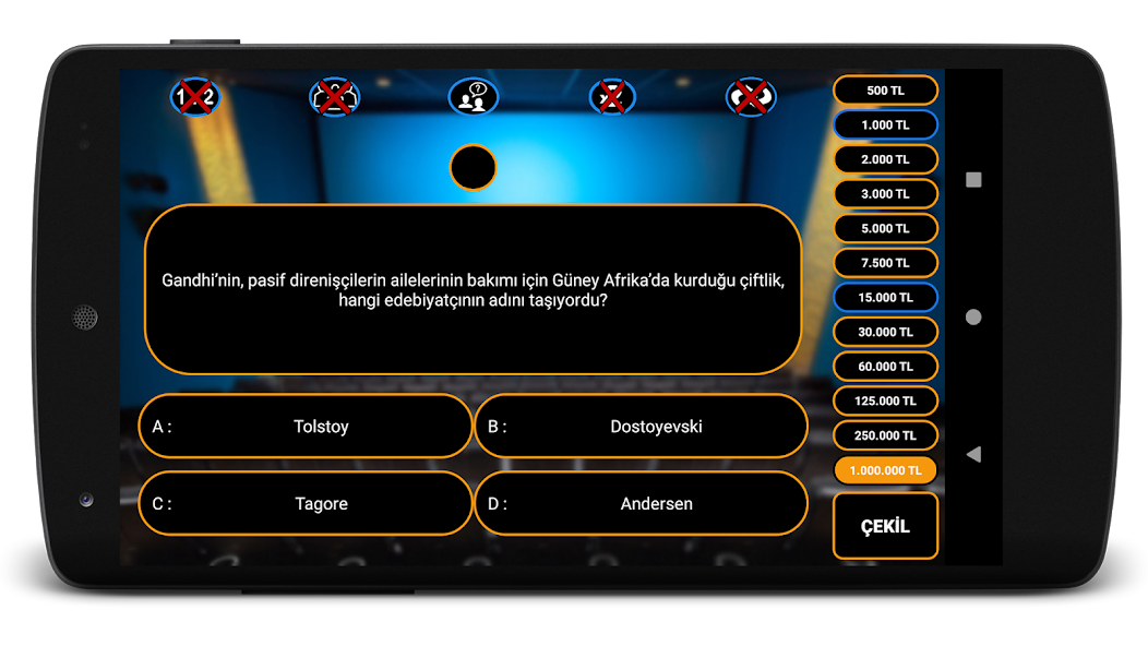 Estamos aquí con el juego más ambicioso de Kim Millionaire. La aplicación es la versión no oficial de Android del concurso millonario que conoces. Who Millionaire Quiz. El primer juego que me viene a la mente, conocido en Turquía. ¡El ganador de los juegos de competencia! El más nuevo entre los juegos actuales, las mejores preguntas de inteligencia y disfrutar de la competencia. Concurso de conocimiento