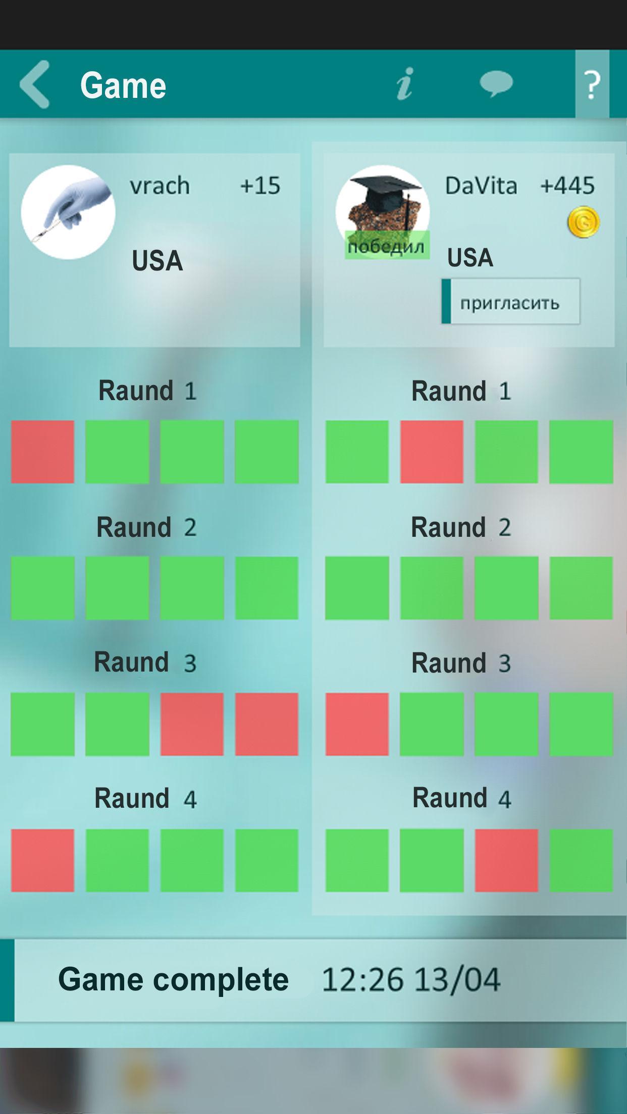 • Juego rápido. Simplemente pruebe su mano y pruebe su conocimiento sin gastar 4 rondas.