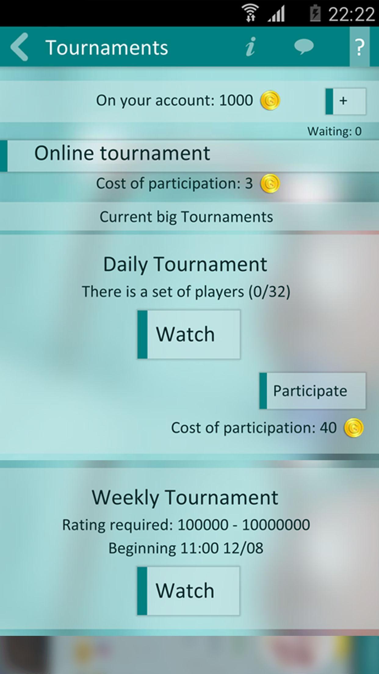 Aquí puedes competir con tus amigos, compañeros de clase, colegas o simplemente jugadores casuales. Trate de alcanzar los rangos más altos: "el mejor jugador de la universidad" y "el mejor jugador del mes". Todos los días 64 jugadores participan en torneos con la aplicación, cuyos ganadores, por supuesto, serán recompensados con valiosos premios.