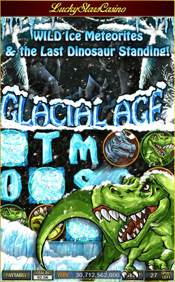 ¡En la era glacial, presencie el último dinosaurio de pie y gane en grande con un montón de salvajes creados por meteoritos de hielo!