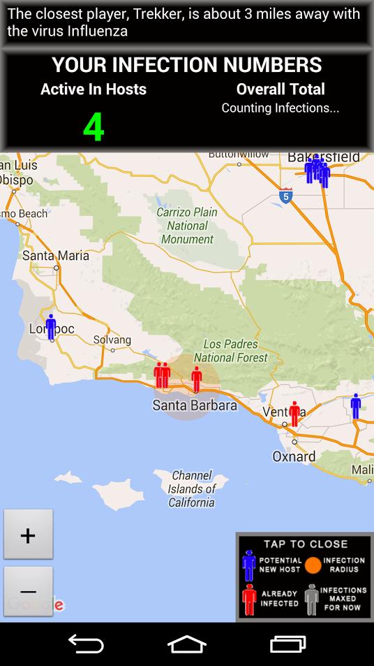 Patient Zero es un simulador de pandemia virtual donde puedes infectar a los jugadores reales. Las infecciones se transfieren por jugadores que se proximan en el mundo real. Los jugadores infectados con tu virus lo llevarán e infectarán a más jugadores. ¡Vea qué tan rápido se propaga su virus único!