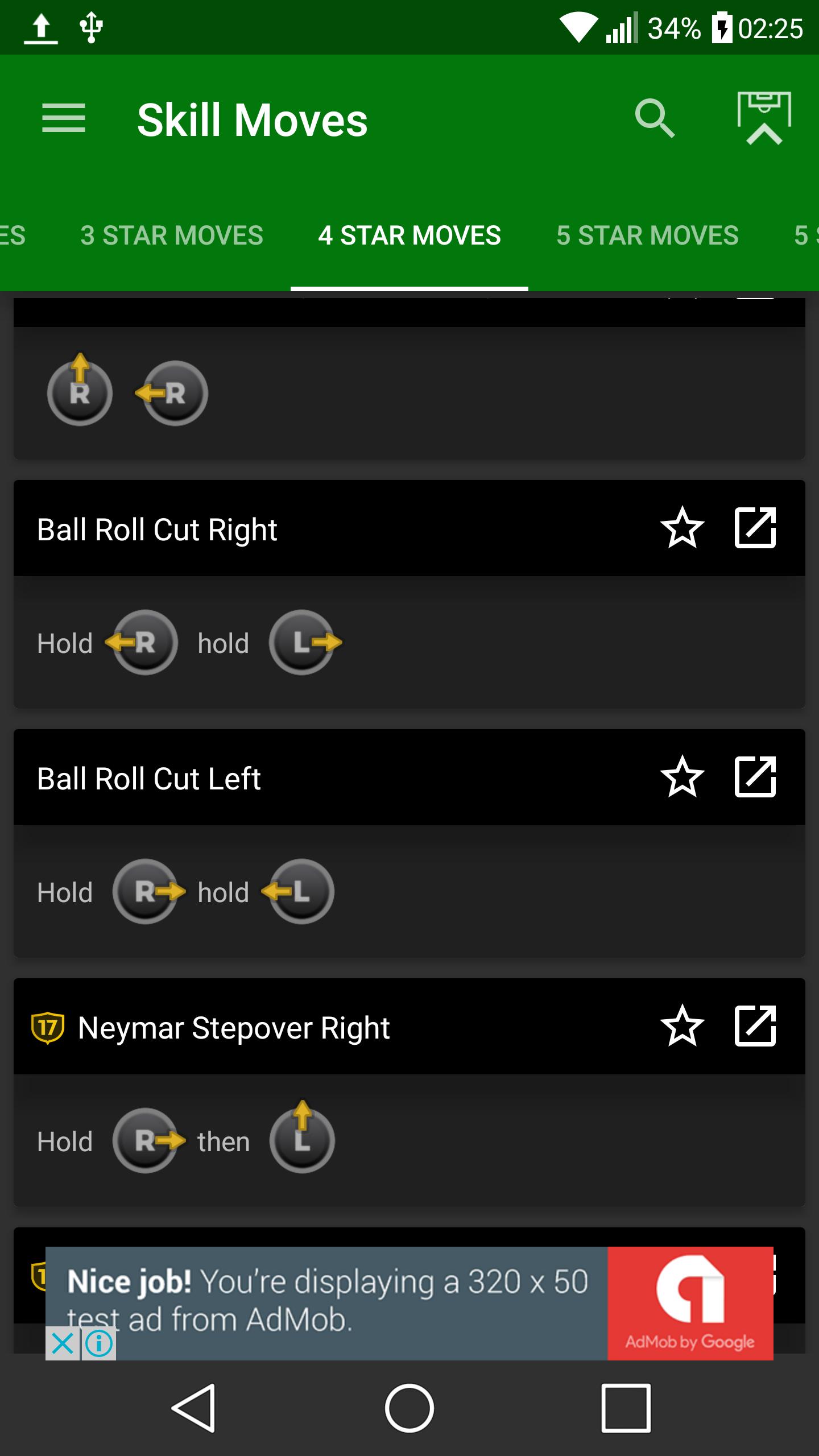 - Learn skill moves such as: Body feint right, Stepover left, Reverse stepover right, Ball roll left, Drag back (while standing), Heel flick, Flick up, Roulette right, Fake left & go right, Ball hop (while standing), Heel to heel flick, Advanced rainbow, Spin right, Stop and turn left (while running), Ball roll cut right, Elastico, Hocus pocus, Triple elastico, Rabona fake (while jogging), Elástico Chop a la izquierda, los cordones se disparan, la película de sombrero a la izquierda, alrededor del mundo, reversa en el aire Elástico, la película de cofre, la escalera de Neymar a la izquierda, Neymar Stepover derecha, pase falso, v arrastre, Ronaldo Chop, Ronaldo Fenomeno, Okocha Sombrero Flick, etc.