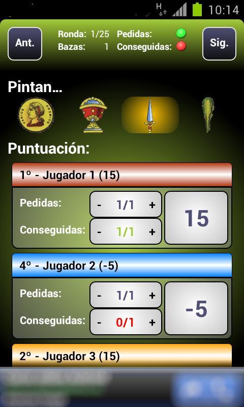 Tan solo tendrás que marcar el palo de la ronda, las apuestas de los jugadores y las bazas conseguidas, el resto lo calculará Pocha Manager.