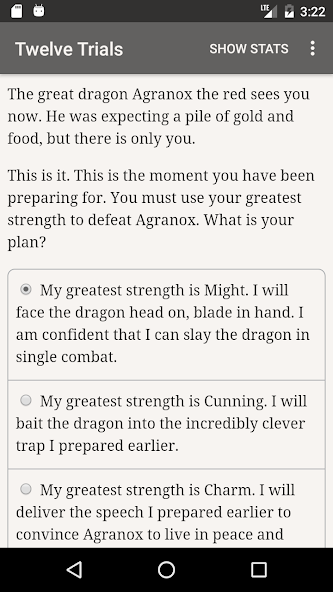 " The Twelve Trials " es una novela de fantasía interactiva de 160,000 palabras de Douglas Dicicco, y ganó el tercer lugar en el concurso de elección de juegos para novelas interactivas. Está completamente basado en texto, sin gráficos o efectos de sonido, y alimentado por la vasta e imparable poder de su imaginación.
