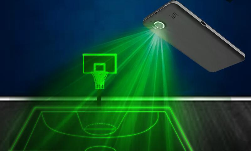 Es un simulador de proyección láser para el juego de baloncesto usando la cámara de teléfono flash