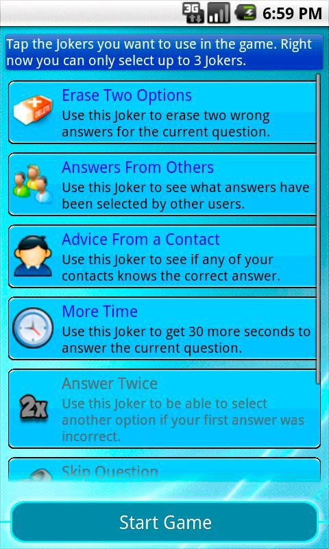 El juego sigue una metodología similar a la famosa que quiere ser un juego millonario, donde debes responder todas las preguntas que puedes mediante el uso de diferentes bromistas (líneas de vida). Pero el juego no se limita a algunas líneas de vida, tienes muchas opciones diferentes para elegir, así como bromistas adicionales y opciones secretas que puedes desbloquear mientras juegas.